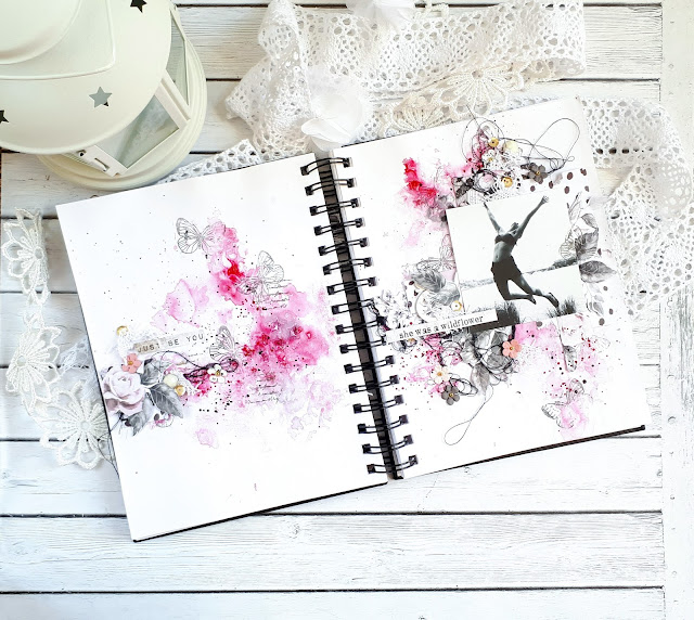 Я знаю, что кое-кто просил и ждал этот МК))) И вот он, дорогие мои. Сегодня я покажу вам как делаю акварельные разводы на своих микс медийных страничках, а заодно мы с вами сотворим разворот в арт бук.